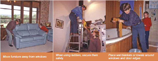 - Move furniture away from the windows to prevent;embers from entering the house through a broken;window and catching alight in the furniture